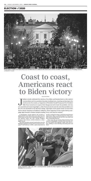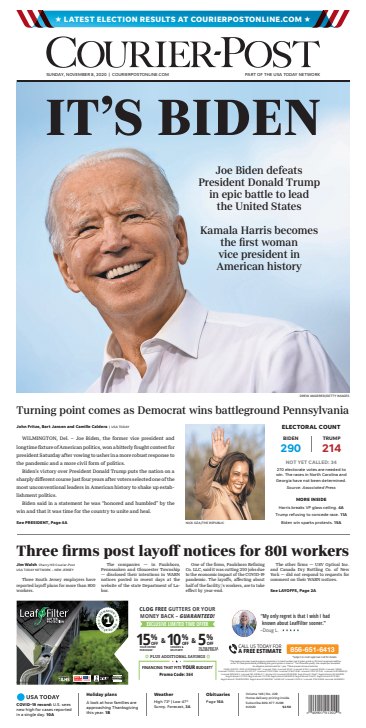 Small selection of pages designed when Joe Biden was declared President-elect in November 2020.