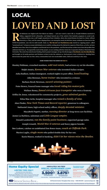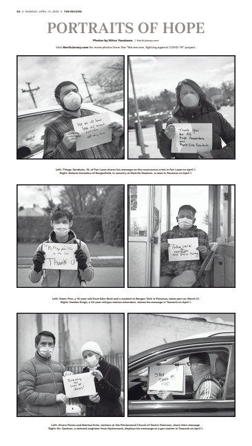 Bergen Record photographer Mitsu Yasukawa did a portrait series sharing words of encouragement from New Jerseyans to their fellow man during the COVID-19 pandemic. Shown below as it ran in print.